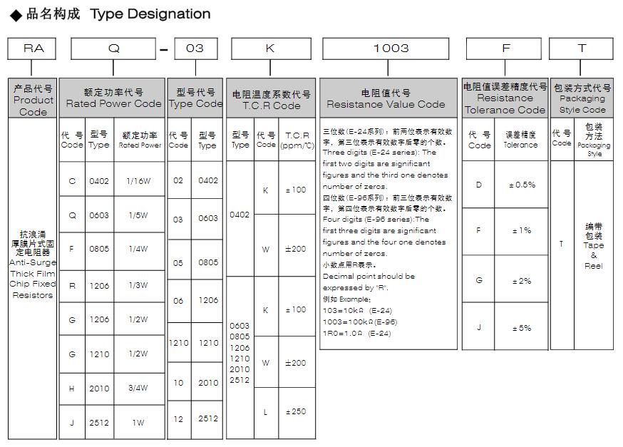風華抗浪涌厚膜片式固定電阻器型號命名規則: