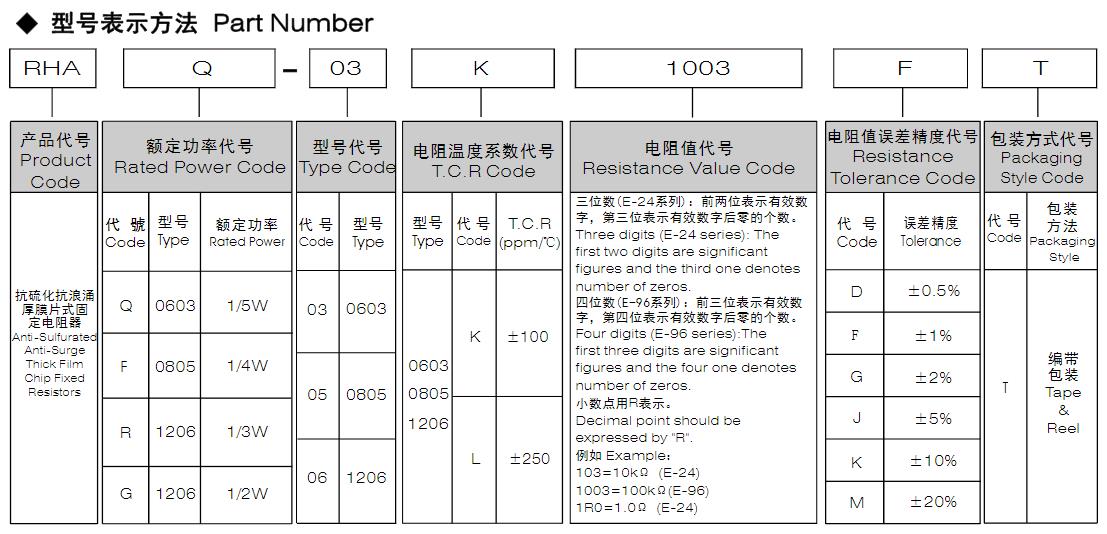 風(fēng)華高科抗硫化抗浪涌厚膜片式固定電阻器 型號命名規(guī)則: