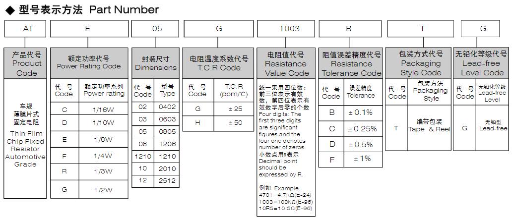 風(fēng)華高科車規(guī)薄膜片式固定電阻器型號(hào)命名規(guī)則: