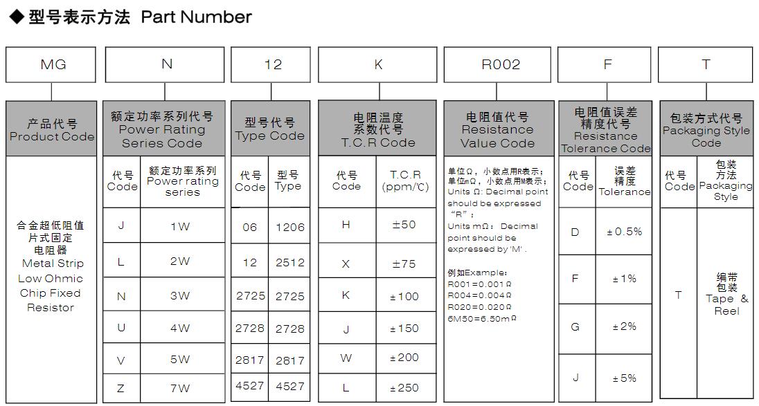 風華高科合金超低阻值片式固定電阻器型號命名規(guī)則:
