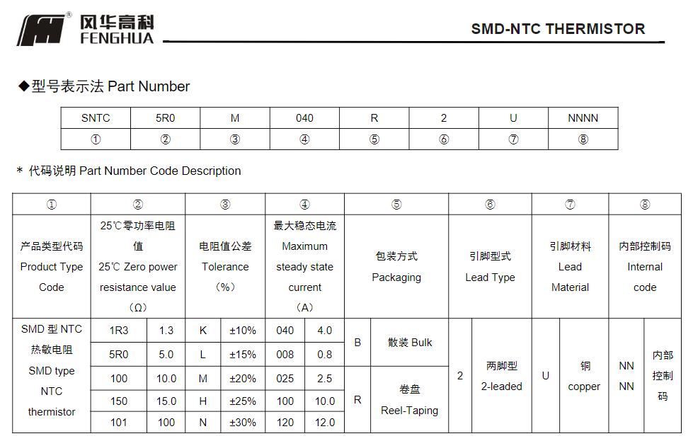 風(fēng)華高科NTC貼片熱敏電阻命名規(guī)則: