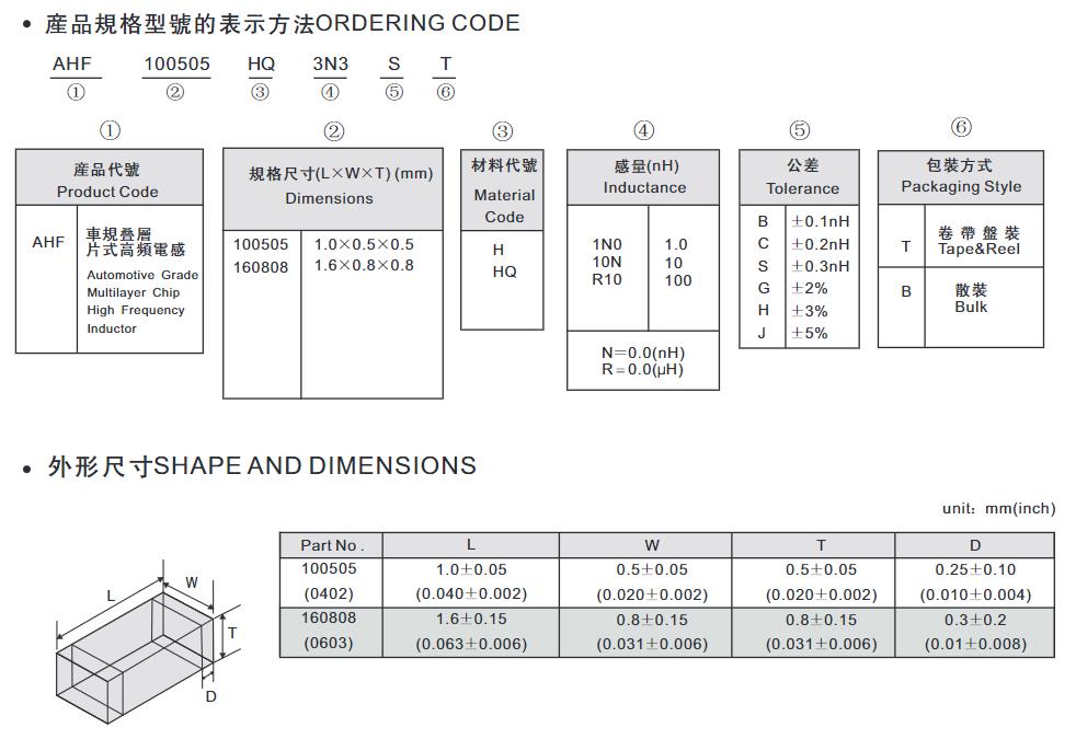 車規疊層片式高頻電感器 Automotive Grade Multilayer Chip RF Inductors