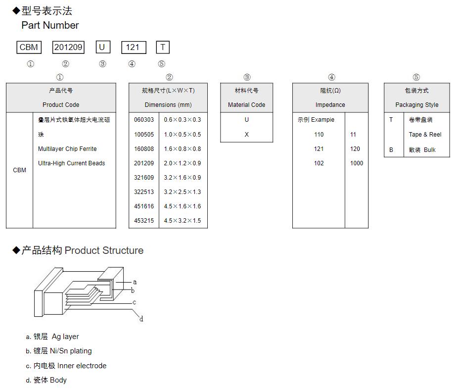風華高科疊層片式鐵氧體超大電流磁珠(CBM) 命名規則: