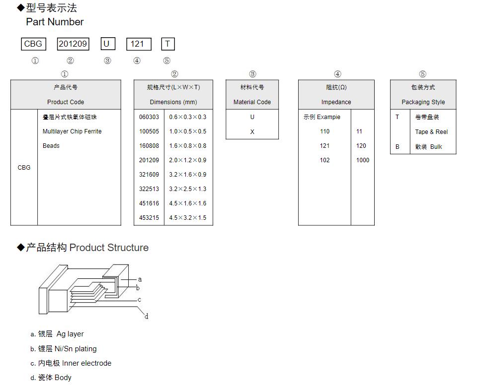 風(fēng)華高科疊層片式鐵氧體磁珠(CBG)命名規(guī)則: