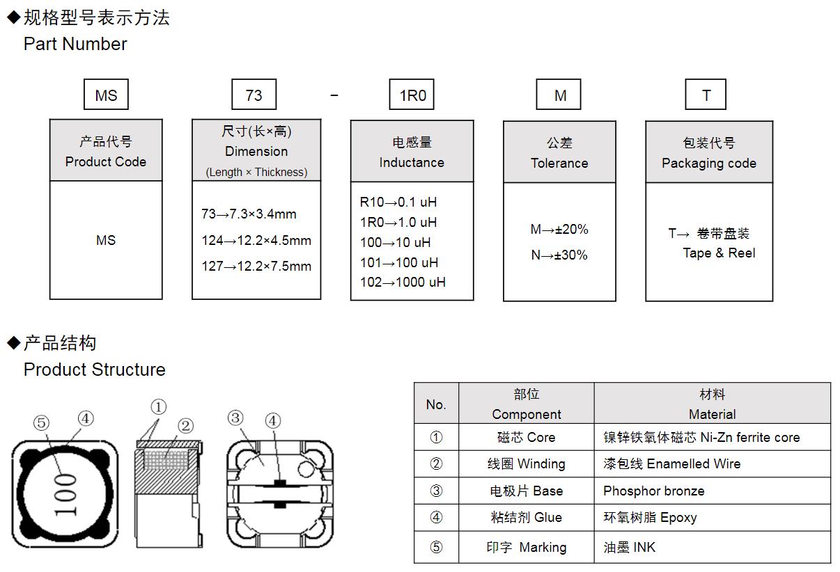 風(fēng)華高科MS系列功率電感器命名規(guī)則:
