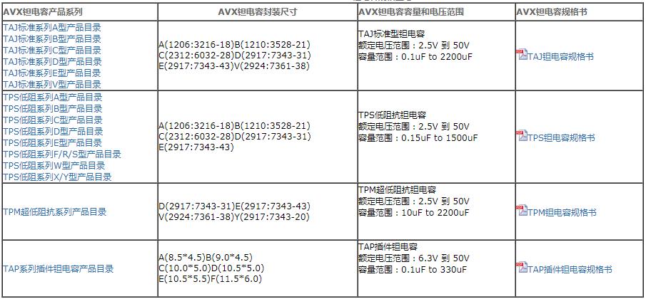AVX鉭電容產(chǎn)品系列: