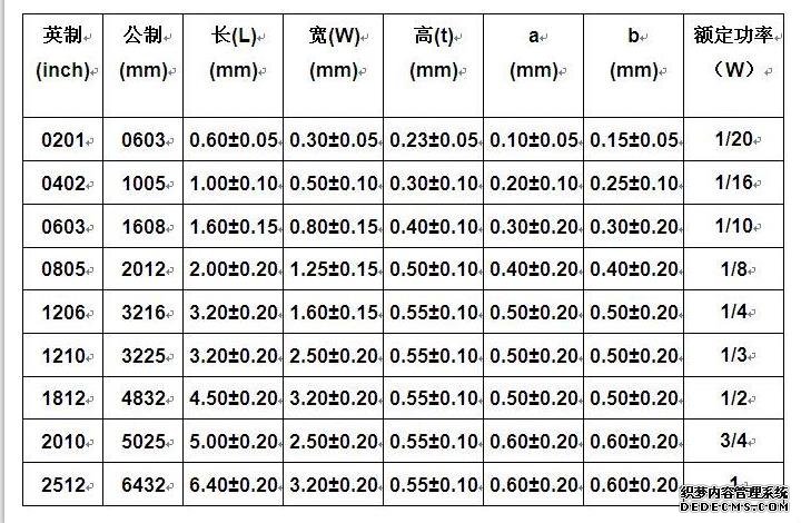 貼片電容/電阻封裝尺寸對照表
