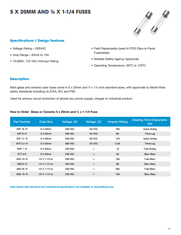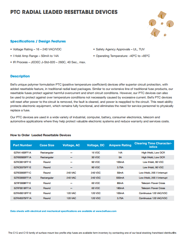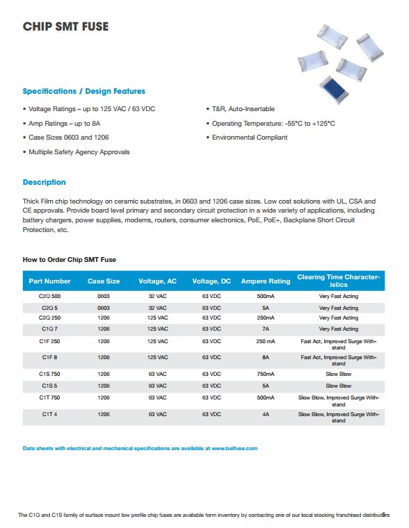 1、磚微型表面貼裝保險絲    2、薄型表面貼裝芯片保險絲    3、薄型SMD可復位器件    4、徑向PTC自恢復設備  5、250/277/350伏徑向保險絲    6、預制600V徑向保險絲    7、微型軸向引線保險絲   8、玻璃和陶瓷保險絲