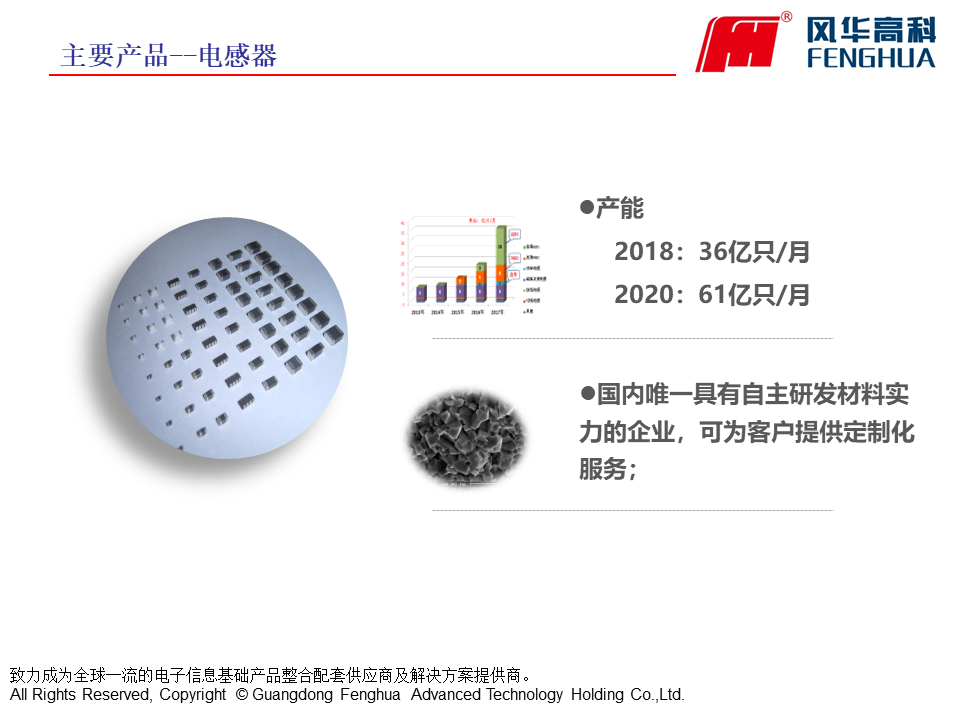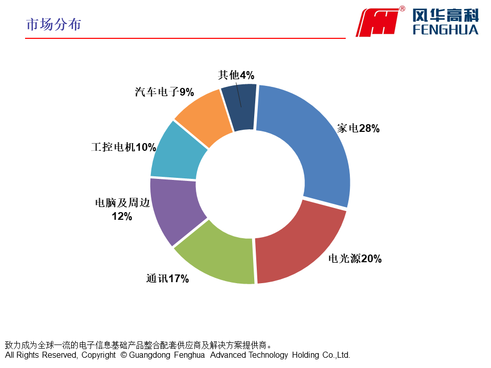 風華高科具有完整與成熟的產品鏈,具備為通訊類、消費類、計算機類、汽車電子類、照明電器類等電子整機整合配套供貨的大規模生產能力。