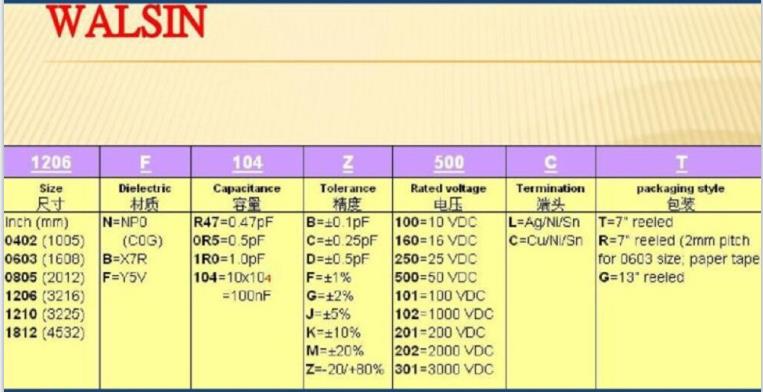 華新科貼片電容命名規(guī)則對照表