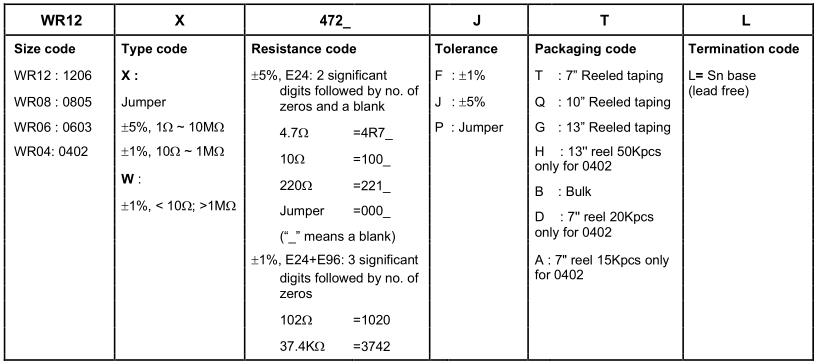華新科貼片電阻命名規(guī)則對照表