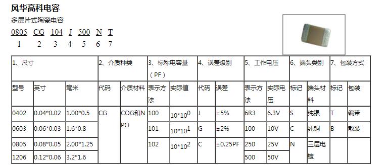風華電容標簽規(guī)格對照表